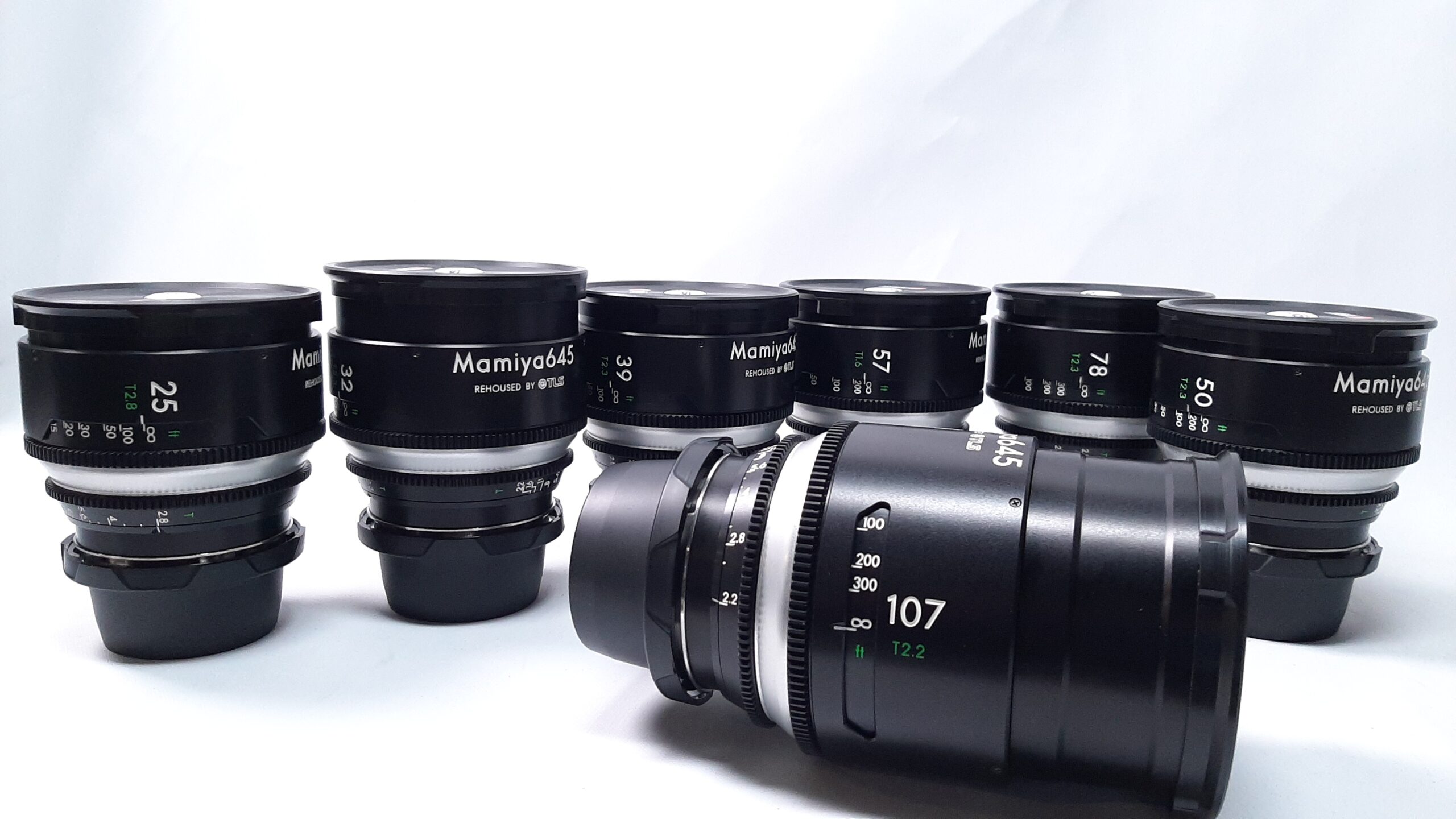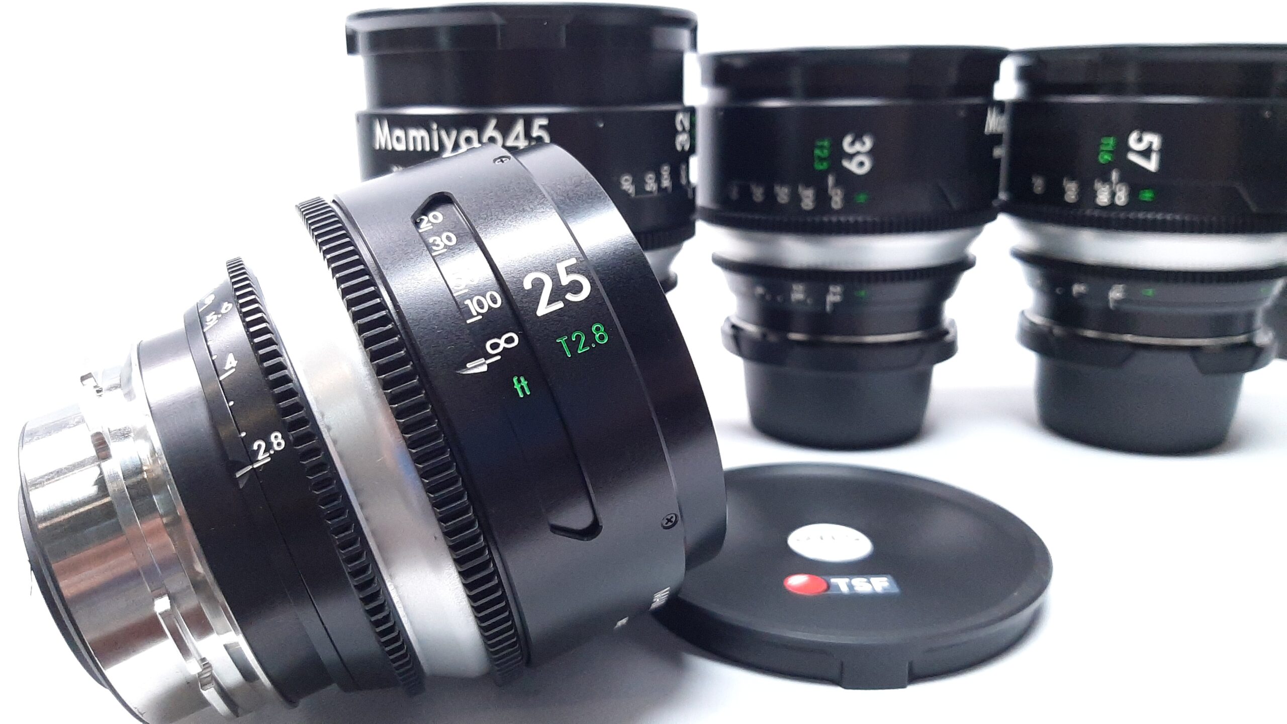 Cette magnifique série de 7 focales (25mm T2.8, 32mm T2.3, 39mm T2.3, 50mm T2.3, 57mm T1.6, 78mm T2.3 et 107mm T2.2) issue des optiques photographiques moyen format, est optimisée pour le Full Frame avec l’intégration d’un Speed Booster 1.4X de très bonne qualité permettant un gain de 1 diaph de luminosité en projetant l’ensemble de l’optique sur la surface réduite du capteur FF.