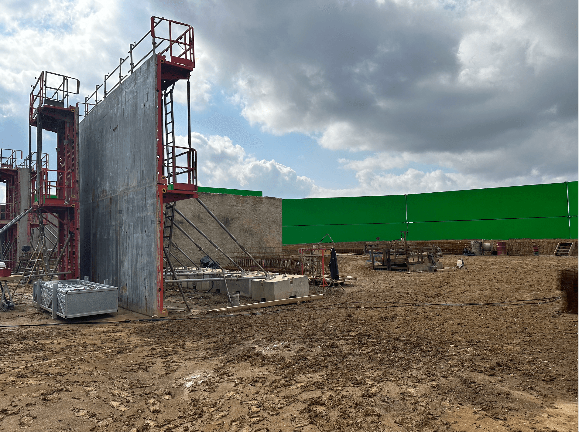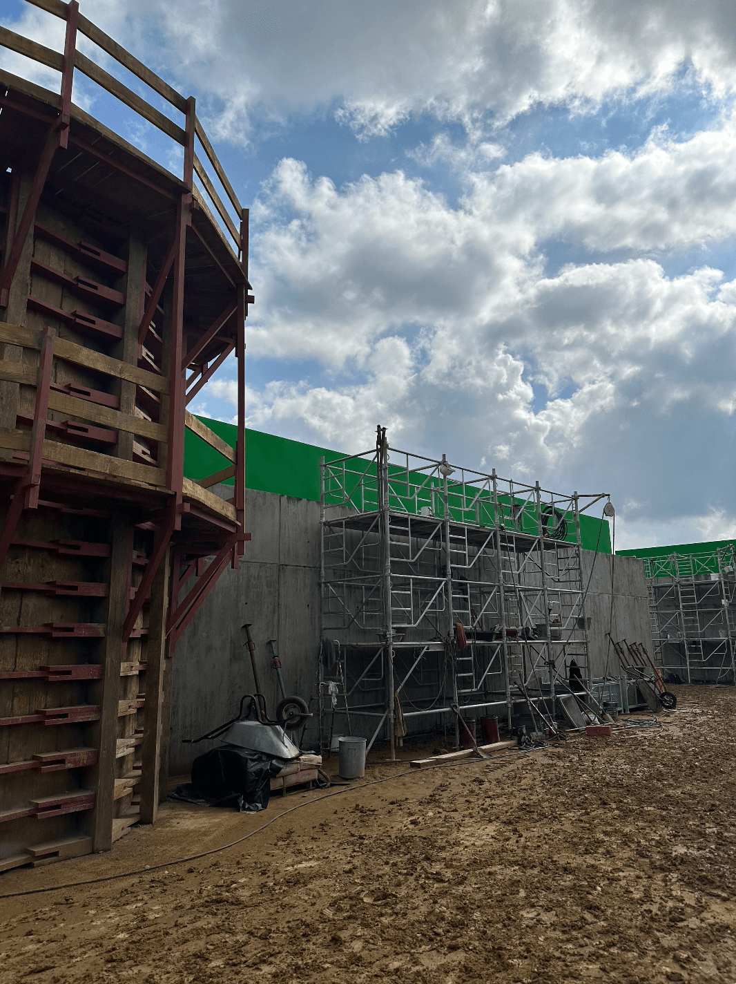 La configuration du terrain – alternant zones en terre et surfaces bétonnées – a permis à l’équipe de reproduire avec réalisme l’environnement du chantier de l’époque.