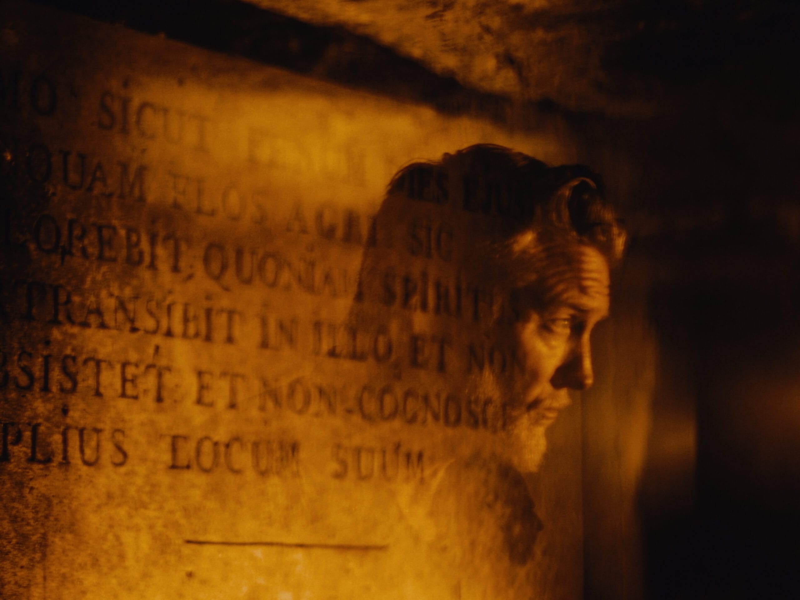 J’ai initialement été contacté par Thomas Rames pour mon invention optique : le Stemirax. Une fois placé devant l’objectif de la caméra, ce dispositif permet de superposer deux images l’une sur l’autre. Utilisé sur près d’un tiers des plans, le Stemirax a permis de concrétiser dès le tournage cette volonté du groupe de ne faire qu’un avec le lieu, de s’y fondre. En explorant les possibilités de superposition entre les musiciens et cet espace symbolique, j’ai pu, par exemple, fondre les visages des membres du groupe avec les crânes et les parois du site. Sur un des plans, le visage de Josh Homme surgit en transparence d’une pierre tombale (voir Stills ci-dessous).