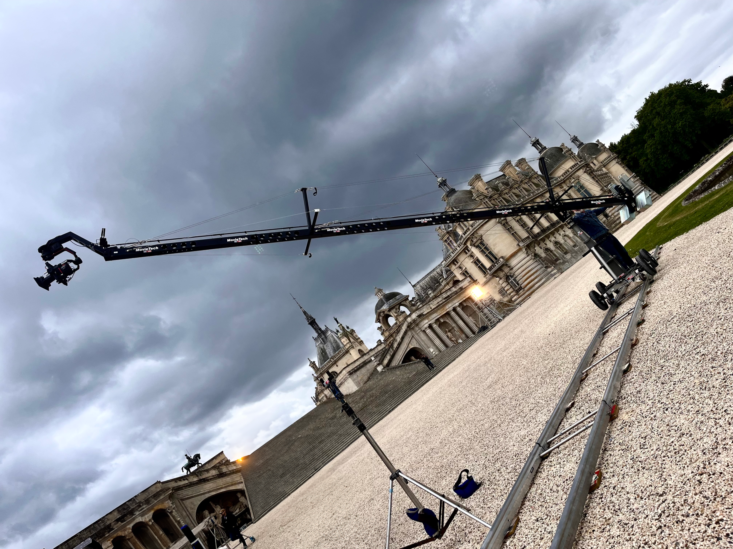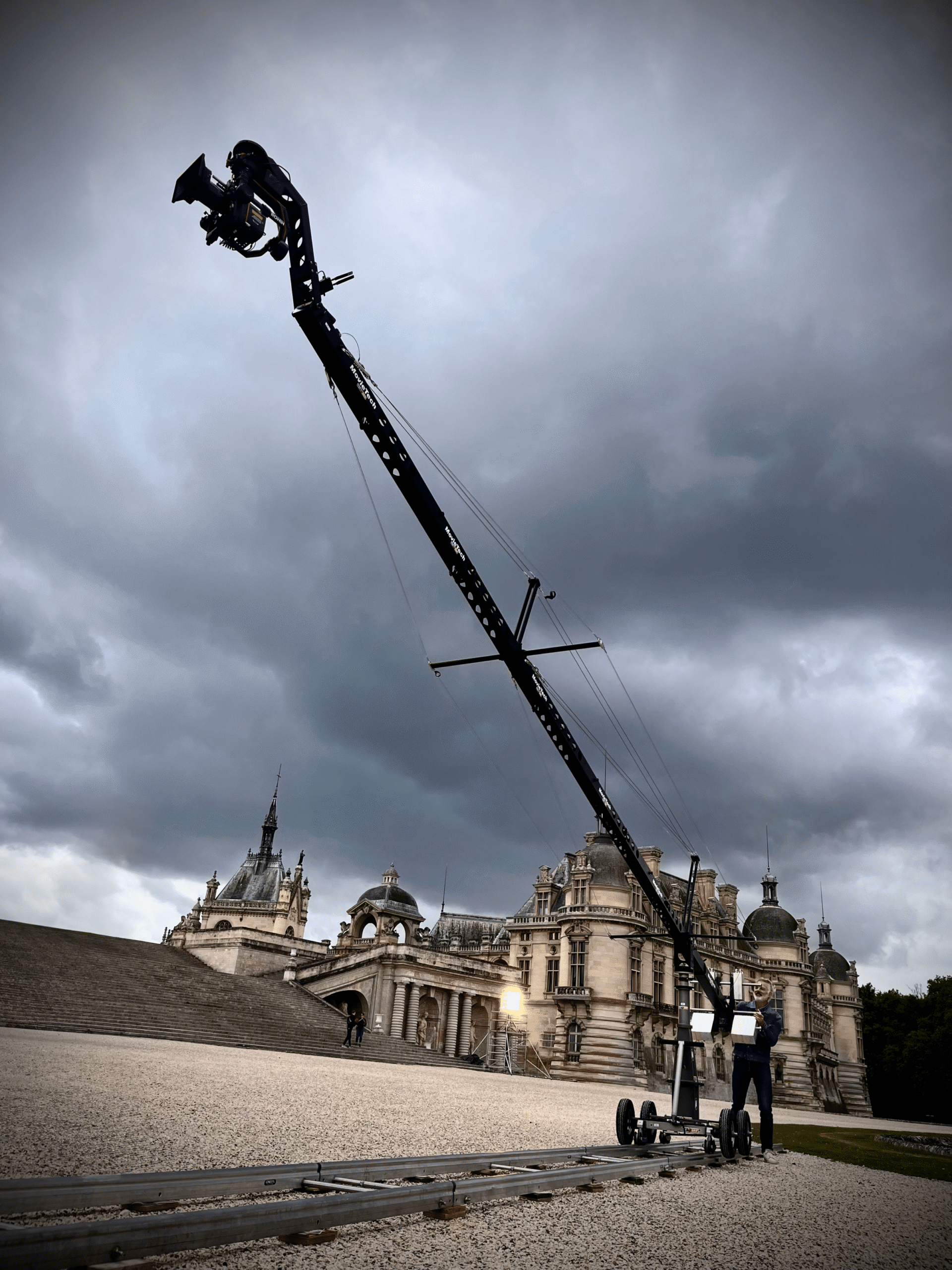 Compatible via ses barres à gueuzes avec différents types de contre-poids, cette grue compacte peut vous accompagner sur vos tournages distants.